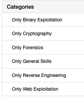 Above is the official description of the picoCTF competition, which is now in its seventh year. It’s a pretty familiar CTF format, but what I like about it is the variety of categories within the competition.