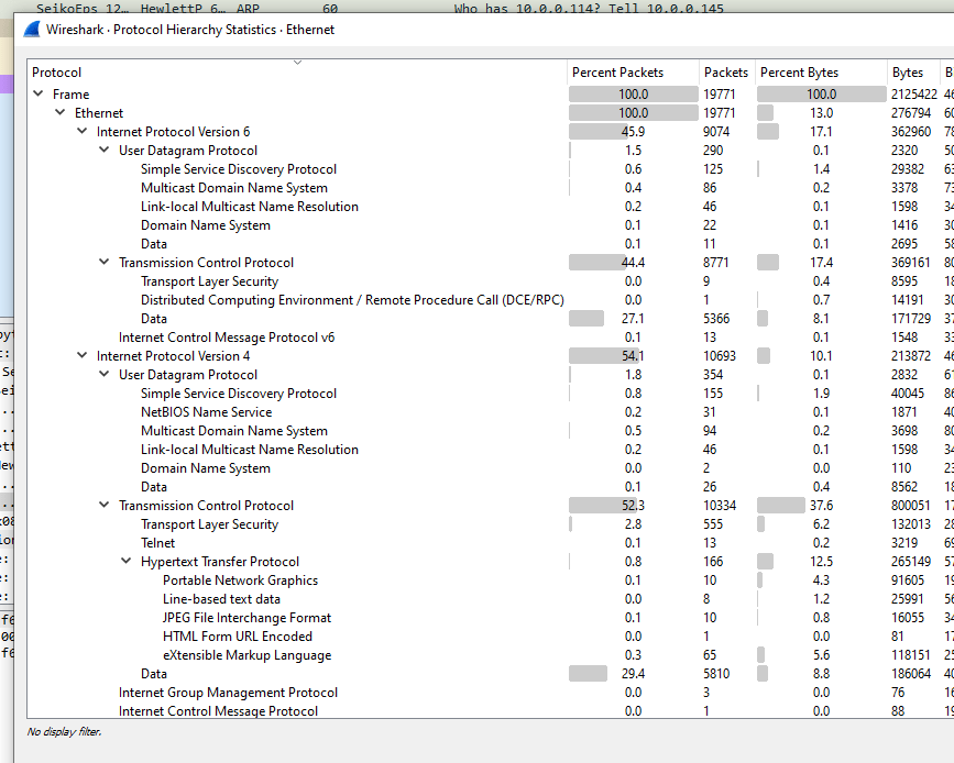 And Protocol Hierarchy will give an overview of all of the different protocols.