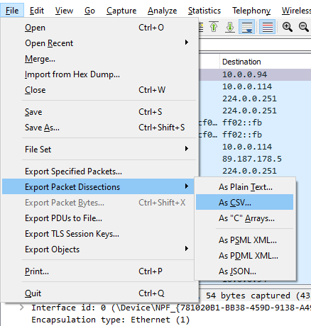 Take note of the Packet Range options — Captured versus Displayed. Captured will convert those columns for the entire pcap into a csv. Displayed will convert only what’s visible with your current filters into a csv. More on filters later.