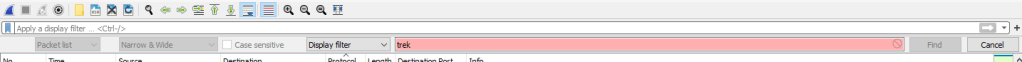 - Packet bytes will search the hex text at the very bottom.