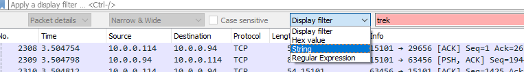 Keep in mind where it says Display Filter, click that and change that to String so we can search for strings.